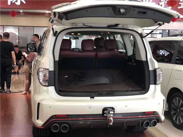中东版19款日产尼桑途乐Y62:途乐采用的是4.0L自然吸气,279匹马力,V6发动机,是7挡手自一体的。最大输出功率298千瓦,最大扭矩550牛米。强大的动力输出和重组的后备功率几乎可以带途乐去探索任何的艰难险阻。途乐的长宽高是(5165*1995*1940)mm。它是一款 5门8座的车,但这款车属于8座车,7座手续,这也是途乐最大的卖点。轴距:3075mm。途乐这款车有两个油箱,主油箱容积:100L ,它的副油箱容积:40L途乐比较其他越野车,油箱大也是它的优势。