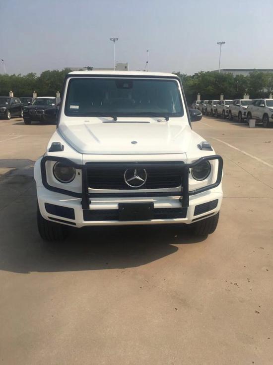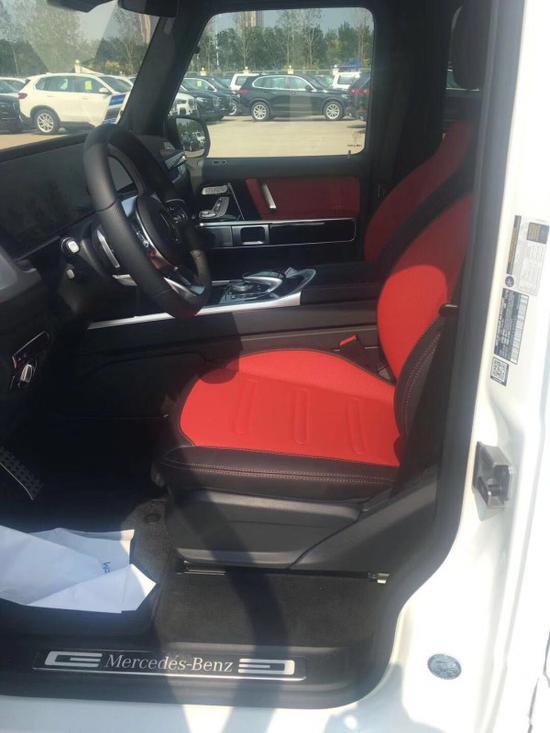 19款美版奔驰G550 极地白/红黑配置:4.0L V8 416马力,9速(9G-TRONIC),三把差速锁,双速分动箱,雷测,车道保持辅助,盲点辅助,主动泊车辅助,倒影,自适应多光束LED大灯,拖钩,智能卡,感应雨刮,前排电动座椅带记忆,后加热,滑动天窗,隔音隔热玻璃,3区空调,空气净化系统,电加热风挡玻璃,侧后视镜电动折叠加热,脚踏,中控大屏,柏林之声音响,Apple CarPlay& Android Auto,64色氛围灯。选装配置:独家内饰包(Nappa皮革内饰,皮革仪表台,无框内后视镜,disigno DINAMICA车顶内衬),AMG外观包(20寸AMG多幅轮毂,AMG运动排气,AMG运动方向盘,卡钳梅赛德斯字样),暗夜包(黑色外观套件,前保护杠,后备胎罩,车身保护条),12.3寸数字仪表盘,舒适座椅包(前排座椅加热、通风、按摩),designo黑色钢琴漆内饰。