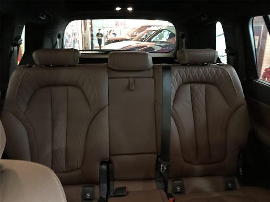 配置方面,新车将提供盲点检测、车道偏离预警、后碰撞预警、正面碰撞预警、行人检测等。19款宝马X7将会提供6座和7座两个版本,座椅布局分别为2+2+2、2+3+2,其中6座布局第二排座椅可选装类似头等舱的豪华座椅。此外,新车还搭载了三段式天窗,其中第三排上方为独立式设计。后备厢门开启方式与X5相同,为上下分段式开启。