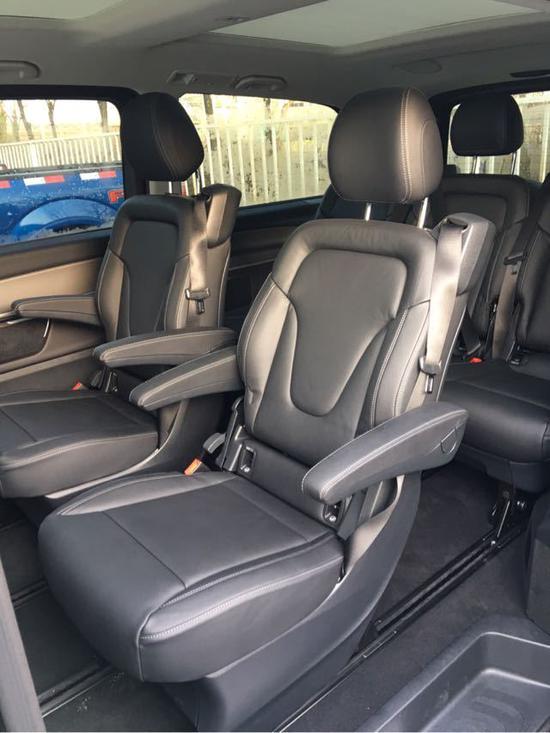 2019款奔驰V250 2.0T汽油 5.37米进口奔驰V级采用经典的2+2+3的七座布局,是为数不多的可以将第一排座椅后方的所有东西全都拆下来,并且地板完全平整的MPV。中排座椅可旋转与后排形成对坐,形成商务洽谈的模式。它的后排车厢也非常宽敞,即便是把两排座椅都往前移动,在原有的1030升的行李舱空间升级为1410升,设计相当人性化。