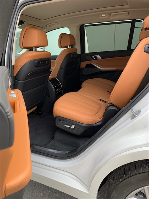 外观设计,外观设计非常越野硬派,整体高大威猛,前脸依然沿用了家族双肾设计造型,进气格珊与两侧狭长的激光灯搭配在一起,显得格外尊贵,也非常大气,从侧面看,侧面腰线从前轮一直贯穿到车尾,门把手采用了非常时尚的隐藏式设计,从尾部看去,尾部四出排气管让该车看起来运动感很强。19款宝马X7亮相,长5米多6座超宽敞,比路虎奔驰都豪气