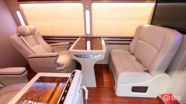 丰田考斯特改装商务车的独特还体现在内饰的设计,丰田考斯特在内饰大的设计上增加了隔断的设计。隔断的增加有这样几点好处,首先从美观上来说,丰田考斯特增加隔断可以让驾驶席和乘客席之间成为两个独立的空间,我们可以尽可能的在内饰的设计上增加自己喜欢的色彩或者装饰。其次从安全性能上考虑,增加隔断的设计可以让司机有一个安静大的驾驶环境,同时也可以带给乘客一个舒适的乘坐空间、最后就是从实用性上来说,丰田考斯特增加隔断的设计还可以让我们在隔断上增加电视显示屏以及电子时钟这些设备。