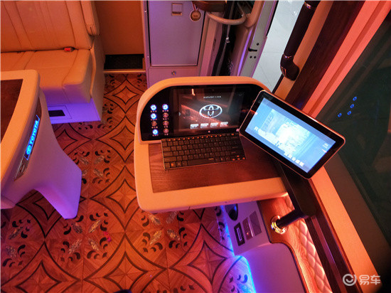 图片中的7座房车版中用了三张日本纯进口埃尔法顶配航空座椅,座椅不但舒适而且具有很多实用功能,比如座椅加热、座椅通风、座椅记忆、脚拖(有二级脚拖)、烟灰缸、折叠隐藏式书桌。丰田考斯特在内饰大的设计上增加了隔断的设计。隔断的增加有这样几点好处,首先从美观上来说,丰田考斯特增加隔断可以让驾驶席和乘客席之间成为两个独立的空间,我们可以尽可能的在内饰的设计上增加自己喜欢的色彩或者装饰。其次从安全性能上考虑,增加隔断的设计可以让司机有一个安静大的驾驶环境,同时也可以带给乘客一个舒适的乘坐空间。