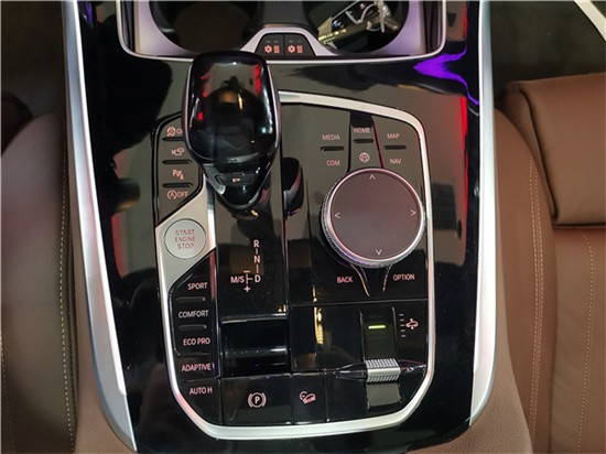 19款宝马X7搭配底盘升降功能,通过推杆,可以将车身最多升高40mm以提高通过性,当车辆处于运动模式或时速超过138km/h时,车身会自动降低20mm,另外静止时,驾驶员可手动降低悬架40mm,方便装载物品。中控台下方的两个杯架,各带有制冷和加热功能。