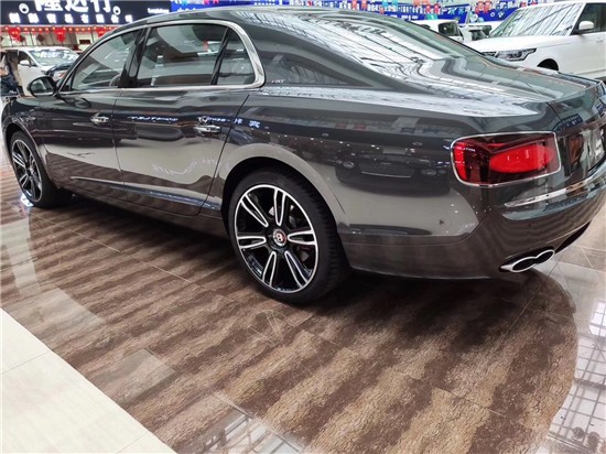 车身侧面,是飞驰相对于欧陆最大的区别,标准的三厢四门设计,本来看起来很平直的设计,实际上到了后轮处会有缓和的突起,虽然不像欧陆那么富有张力和夸张,但是也足够让他充满力量感。20寸轮毂使用了非常有运动感的双色设计,造型有很偏复古,刹车卡钳上还有宾利的标志,轮胎品为倍耐力的PZERO,尺寸为275/40R20。