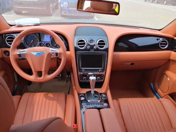 全新进口宾利飞驰的中控台造型更偏复古,而用料则是这台车最大的亮点。中控台大面积的胡桃木饰板仿佛玉石一般润泽,让人非常舒心。三幅式方向盘由胡桃木与真皮组成,握感相当棒。仪表盘内使用了大量的镀铬边框,表盘设计较为复古。推拉式的空调出风口,开闭之间的阻尼适中,手感很棒,精致的镀铬工艺及造型更是让人欲罢不能。