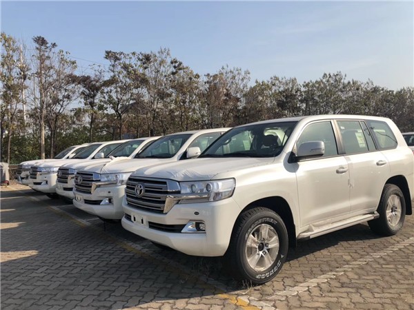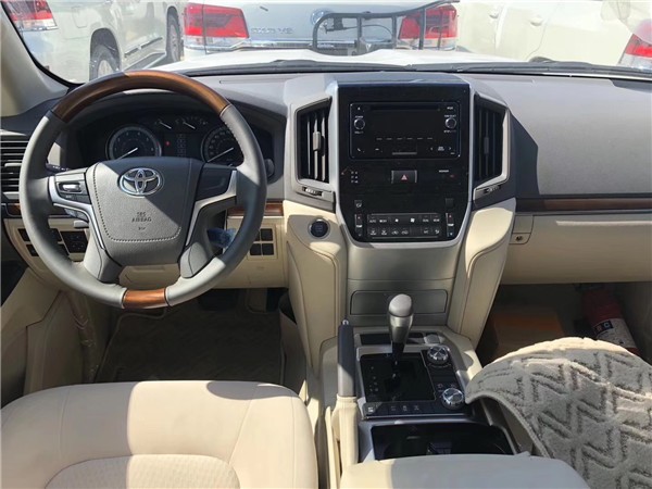 19款中东陆巡4600 V8带KDSS版 主要配置:八气囊 ,7座丝绒座椅,天窗, 后挂备胎 ,17英寸铝合金轮毂(18英寸铝合金轮毂),冰箱 ,主驾电动座椅调节, 定速巡航, 蠕行模式 ,无钥匙进入, 一键启动 ,多功能桃木方向盘 ,桃木内饰, 自动空调, 后排独立控制 ,二三排出风口, 丝绒座椅, 氙灯LED ,雾灯 ,铝制踏板,原厂脱钩 , KDSS悬架系统,(18轮带遥启)。