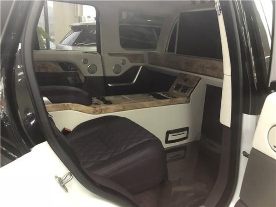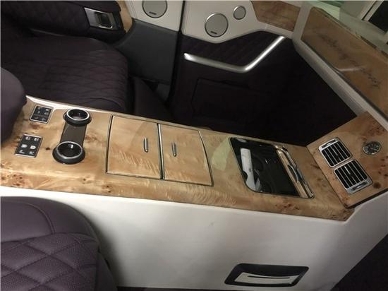 19款路虎揽胜皇家一号配备双重电控升降隔屏(木质电视升降隔屏+电控雾化玻璃升降隔屏),为乘坐者营造出一个顶级雅致的私人空间!32寸高清液晶电视搭配DVD影音系统(带HDMI及蓝牙接入)、2个10英寸小HD电视、殿堂级高保真环绕音响,铺垫了一场影音视频环绕的氛围之行。