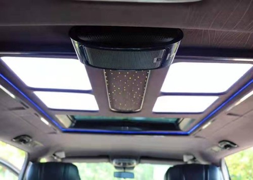 进入后舱,立刻就会被它的豪华绚丽而征服,驾驶舱与后舱是分隔设计的,形成两个独立的空间。中间由一台超大液晶升降电视(32寸)及柚木多功能吧台及柏林之声音响组成,整车环保真皮包裹,金网花地板铺设,豪华感无处不在。全部采用真皮制作,豪华木饰装点,装有按摩加热通风功能。后舱前为两个独立航空座椅,后为一组沙发座椅(可电动展平,形成一张舒适的沙发床)。
