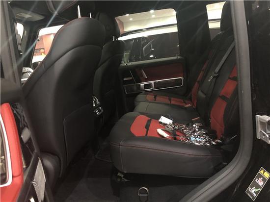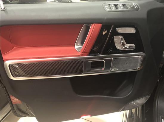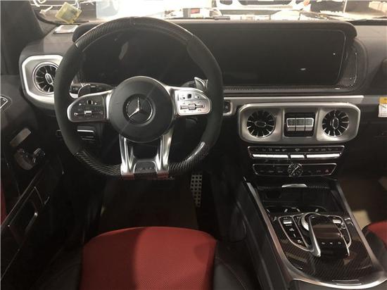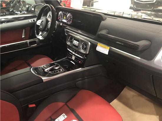 2019款美国版奔驰G63 黑色金属漆/红黑双拼内饰配置:红色napp 真皮,碳纤维内饰,AMG灯光包(包括外后视镜,备胎罩),停车辅助包(环车影像系统),特选AMG前、后红色刹车卡钳,12.3英寸全液晶显示屏,多功能加热方向盘,AMG碳纤维性能方向盘,亮黑钢琴木饰,全季脚垫,解除限速,22寸AMG耐磨轮毂。