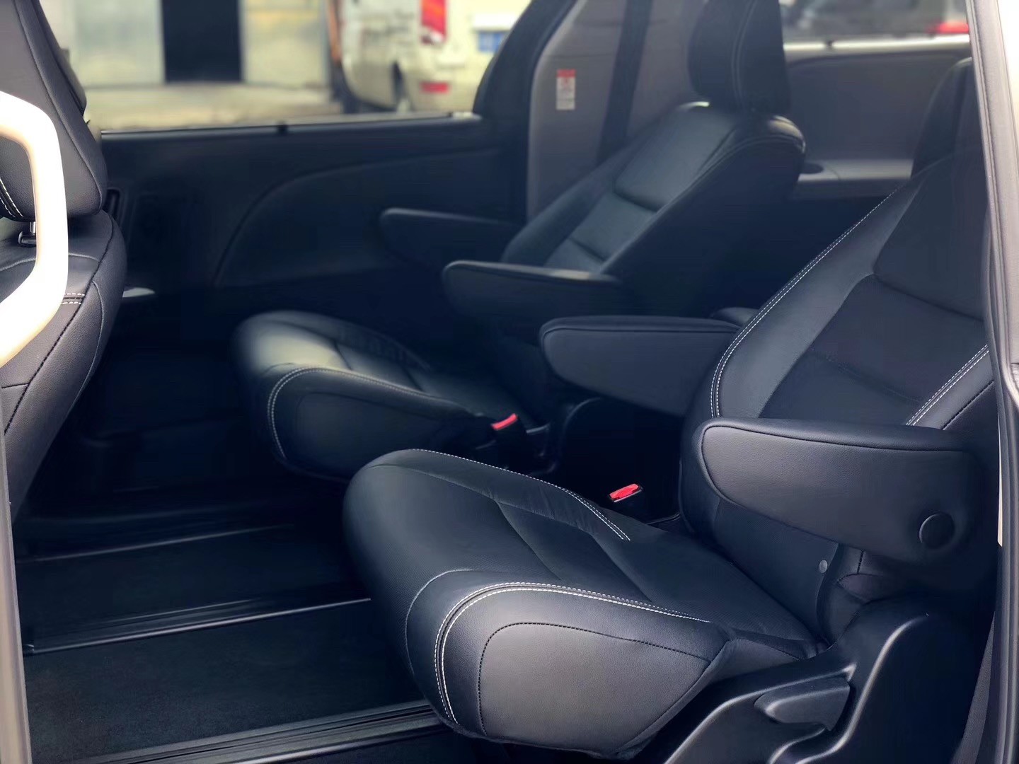 空间方面:19款丰田塞纳内部空间非常大,充分发挥了MPV的优势。 座椅全部采用双色真皮,第二排座椅的腿部支撑,放倒第三排座椅,加上腿部支撑,完全变成了两张摇篮床,让长途旅行多了一份舒适。宽敞舒适后座空间,配上该车安全稳定的行驶系统,保证途中也能舒适地谈上生意。