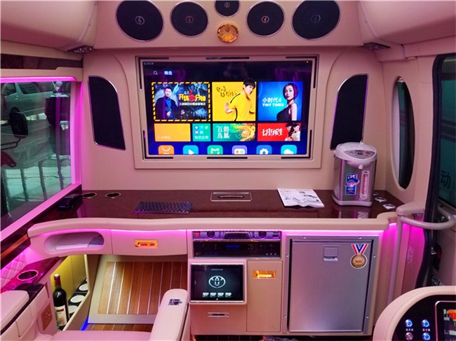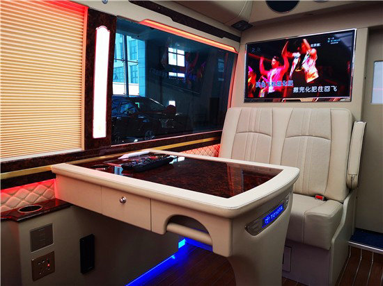 2019丰田考斯特商务车:17。柯斯达超VIP尊贵版真皮办公桌、柯斯达木纹仪表台、柯斯达DVD