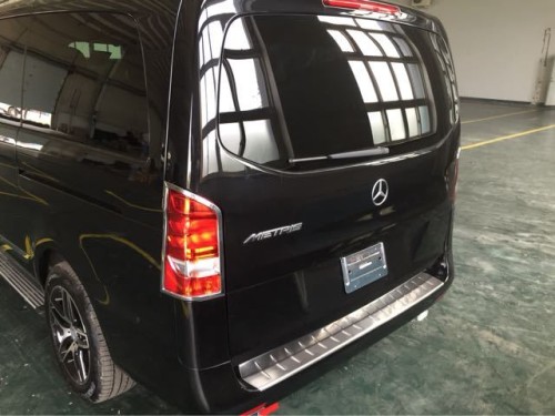 奔驰迈巴赫VS680尾部也是跟常规V级略有改变,增加的镀铬装饰条,全新样式的后保险杠,依旧是隐藏式的排气,只能通过尾部的VS680才知道此车的不凡。