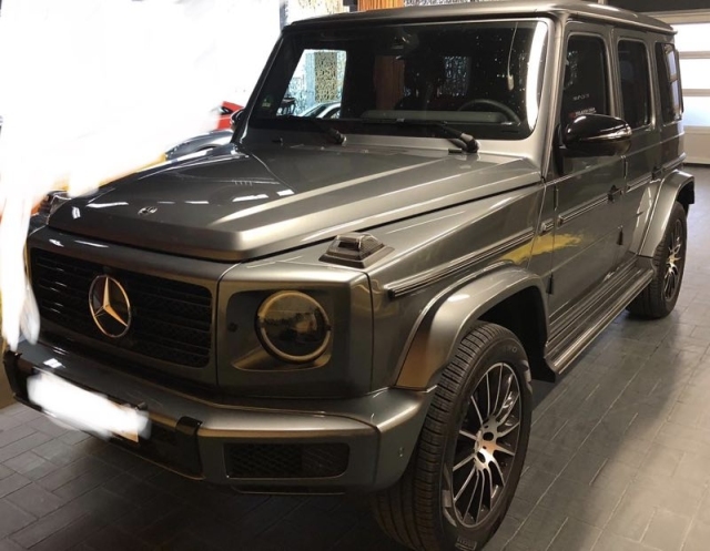 配置 19款欧规奔驰G (配置|询价)350D 柴油灰/黑AMG包、驾驶员辅助套件、Burmester环绕音响系统、可调节阻尼悬吊系统、驻车加热系统带遥控器、数字广播、驾驶辅助套件、后备箱隔物网、防盗套件、滑动式天窗、100L加大油箱、多光束LED大灯、夜间套件、橡胶脚垫、不锈钢套件、驻车组件带360°影像、舒适通讯套件、拖车钩、后排侧安全气囊、designo雾面黑色梣木饰板、后备箱橡胶垫、行李箱隔板、金属漆。