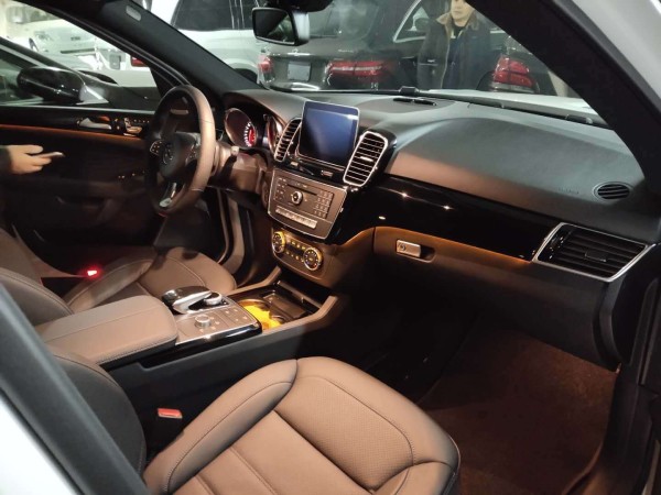 18款奔驰GLE43 AMG内饰做工十分精致多功能方向盘和带有三种颜色及亮度调节的环境氛围照明系统,新车配备的运动型NAPPA真皮座椅,高档的选装材质,显得车内豪华质感,中控台布局进行了重新调整,整体更加合理,空调出风口位于悬浮屏两侧,全车实木内饰,大导航屏幕,新车的第二排空间带来了行政级别的表现,全系标配的电动后备厢不仅实用,还特别能提升逼格,后排座椅放倒之后,可以与后备厢内部形成一个非常平坦的大型储物空间。