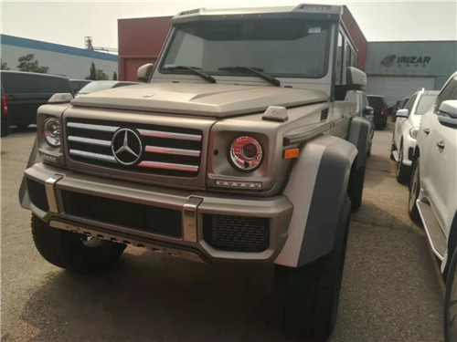 奔驰G550 17款美版 4x4² 配置:22轮;红卡钳;双减震;单天窗;氙气大灯;LED日行灯;18向多轮廓电动包裹座椅;翻毛皮内饰(皮+翻毛皮双拼座椅;翻毛皮方向盘;翻毛皮门板;翻毛皮内顶);前座椅加热通风;二排座椅加热;哈曼卡顿音响(14个扬声器);三把差速锁;碳纤维内饰套件;脚踏;前雷达;倒影;导航;多功能方向盘;定速巡航;换到拨片;单选:电动踏板(305W电议可谈)