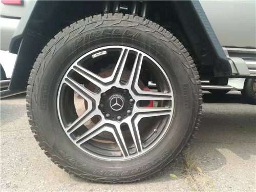 19款奔驰G5504*4搭载4.0LV8发动机,机械增压器的装备使得它在1800rpm时就能爆发出80%的最大扭矩,具有216kw/5500rpm的最 大功率和456nm/2800-4000rpm的最大扭矩。底盘有好几道加强梁进行加固,前后整体桥式悬挂系统粗壮无比,绝对是最强壮的民用车之一。