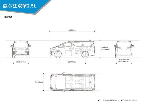 尺寸上,威尔法的长宽高分别为4975×1850×1950mm,轴距达到3000mm,相较埃尔法,车身长度较埃尔法长了30mm,但高度降低了55mm。显得更加“瘦长”,但也同样保证了空间与埃尔法一样“能装”。