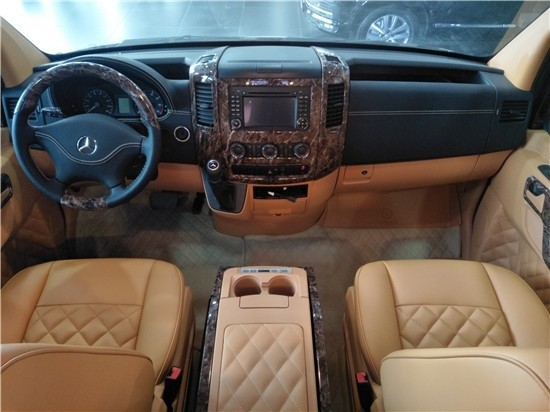 奔驰斯宾特方向盘采用真皮包覆,操作起来,触感极佳。斯宾特操作台按键排列整齐,便于操控,斯宾特正副驾驶座椅全部真皮制作,填充物软硬适中,乘坐舒适。斯宾特中间设置有车载冰箱可达零下18度,及车载无线电话方便前后仓沟通交流。
