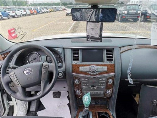 19款日产途乐Y62在内部整体采用了深色调的颜色搭配,带来具有高贵感的内饰氛围。同时,该车中控台及方向盘运用了大量的皮质包裹,在质感的营造上也较为出色。此外,这款车在换挡杆周围等区域融入了木纹装饰,这也相应提升了其内饰整体的豪华感。