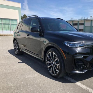外观方面,宝马X7 (配置|询价)基本还原了概念车的设计,超大尺寸的双肾式前格栅不仅纵向尺寸有所拉升,也增加了几分棱角分别的感觉,视觉上十分贴合旗舰SUV的气质。 车侧线条较为平直,车顶线条、腰线等都没有太多刻意追求俯冲感,符合大型SUV应有的性格,而上下双腰线的设计也让车辆从侧面看上去不会太过平淡。车尾设计追求简约,两侧扁平的多边形LED尾灯组与前大灯相呼应,并由中央镀铬饰条相贯通,提升了美感。车身尺寸方面,宝马X7的长宽高分别为 5151×2000×1805毫米,轴距为3105毫米。