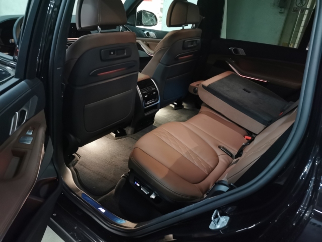 宝马X7的尾部后备箱采用上下对开的开门方式,贯穿式的尾灯配合一整根镀铬装饰条,符合当下的潮流,车尾部的线条设计也非常丰富,排气采用了双边单出的设计,处处都彰显着大气两个字。车尾上,宝马X7的设计与车头比起来要收敛很多,不过看起来比它的兄弟宝马X5横向视觉被拉宽很多,车顶后扰流板的设计运动感十足。新车尾灯的设计格外时尚,并在两端尾灯中间采用镀铬条进行连接,格外的时尚。排气上,新车采用双边单出的设计,并在排气尾喉上采用镀铬材质进行装饰,充满运动与豪华感。