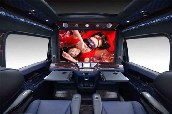 迈巴赫版奔驰V250改装锦绣山河特别定制款,一键式42寸高清液晶升降电视,搭配影院级音响系统,仿佛如行走的IMAX影院级视听体验。而前后舱隔断航空铝材,不仅保证前后舱的独立私密性,更专注后舱视听效果的享受。液晶屏可升降,可以面对面的交流,也可以通过前后舱联络电话以及智能语音聊天系统。