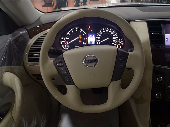 日产尼桑途乐Y62采用了豪华轿车习用的四幅风向盘计划,粗细比力合手再加之真皮加实木的用料,手握觉得极佳。此外标的目的盘功效强盛,集成了音响、空调节制及蓝牙车载免提系统,使驾驶者在行车中更加安全,做得手不离标的目的盘。