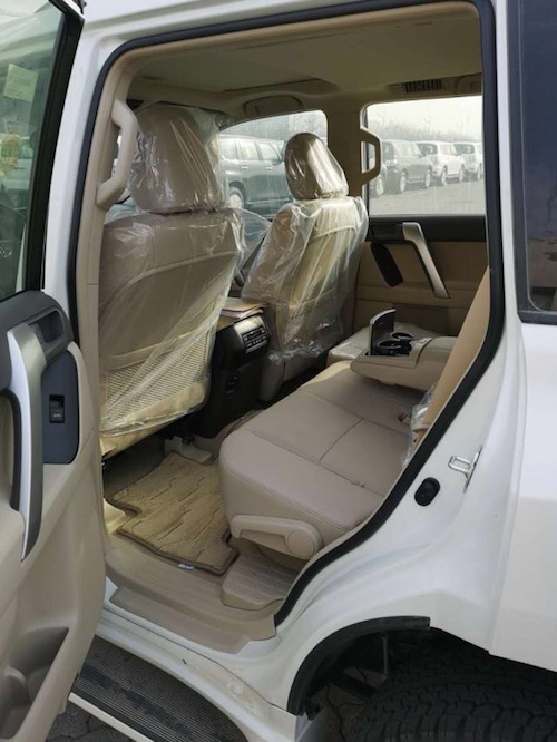 19款霸道4000VXR配置:后挂 9气囊 18轮 天窗 前小杠 氙灯带清洗 黑踏 行李架 前2后4电眼 遥启 前排电椅 真皮座椅 一键启动 多功能方盘 巡航定速 DVD 冰箱 导航 倒影 自动空调 胎压报警
