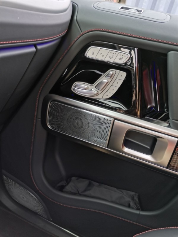 19款奔驰G63的内饰极具现代 感,中控台出风口、扬声器指示灯的造型与车灯相得益彰。而两块12.3英寸的显示器则让整个内饰氛围升华,还提供了经典、运动、渐进三种模式可选。舒适、科技配置也让人眼花缭乱,包含:驾驶员座椅记忆、前后座加热、多角度调节、座椅按摩(Active Multicontour座椅套装)、AMG多功能方向盘(可控制自适应巡航、语音控制、多媒体控制等)。