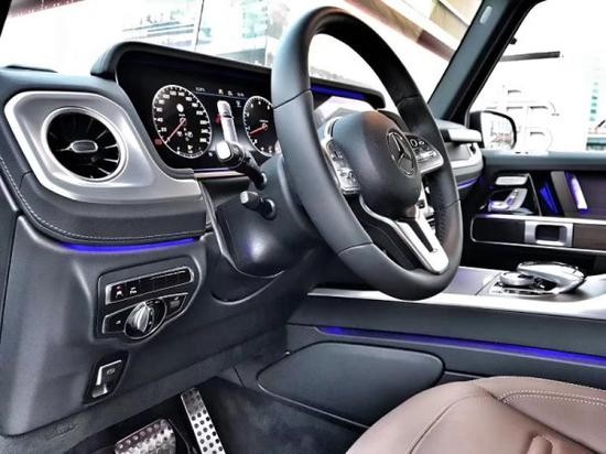 19款奔驰G500内饰是施行了大改方案,更具豪华感,使内饰变得更加具有豪华感和舒适感。中控内饰区域变得更加宽敞,多功能方向盘区域也进行了重新设计,并采用了家族式设计的双大屏以及怀挡设计,并配备了BMUX语音助手。
