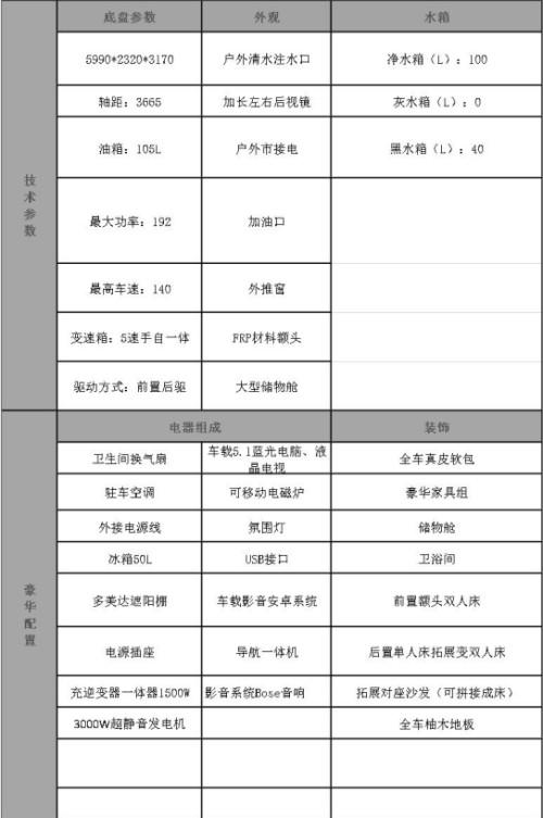 房车配置及改装明细
