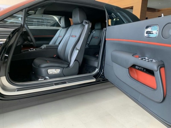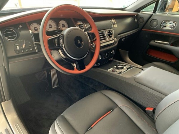 18款魅影Black Badge限量版内饰采用了黑橙色彩搭配,整个内饰均有纯手工打造而成。而且这款车的星空车顶也是不同于劳斯莱斯其它车型的,它首次采用了渐变色的设计,通过顶棚的1340的光导纤维排成了碳分子的结构,塑造了很强的视觉冲击力。