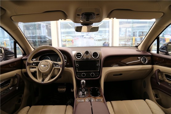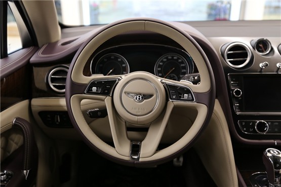 宾利添越内饰依然保持了奢华复古的主旋律,用料不计成本,采用非常珍贵的木材和皮革,纯手工甄选、缝制,料之奢华、做工之精致均无可挑剔。中控整体风格成飞翼式设计,功能区域采用传统设计,方便上手。了解添越的人都知道,这是一款为驾乘者打造的全地形SUV,因此驾驶舱固然重要。真皮包裹的方向盘手感无与伦比。各功能按键也很齐全。