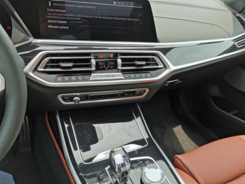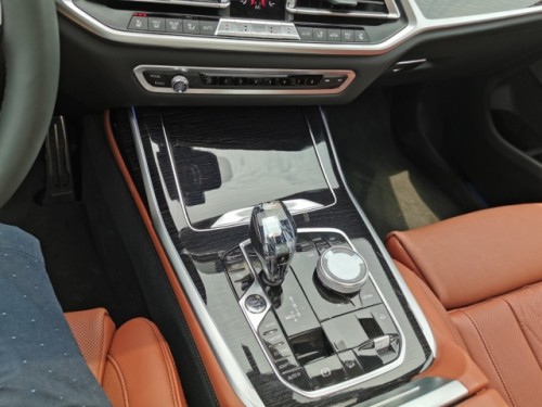 宝马X7的内饰还是使用了经典的宝马设计语言,在用料上有了更为精细的讲究,营造了更多的尊享感。使用了全液晶仪表盘和大尺寸的中控屏幕,全车氛围灯和全景天窗的发光单元也是必不可少。另外,它还很有逼格的使用了水晶的鸡腿档把,看起来非常的精致有档次。挡杆采用了水晶材质,内部印着“X”字样,切面的设计让其从各个角度看都有不同的视觉效果。在挡杆旁边是车辆的启动按键,上方同样使用了水晶材质非常有质感。除此之外该区域还布置了空气悬架调节和驾驶模式调节按键,电子手刹也在该区域控制。