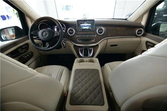 2019款进口奔驰V250改装迈巴赫VS680的驾驶舱,采用奔驰现款轿车的设计风格,豪华之感十分浓郁。整个车舱全部采用软性皮质包裹,中控的胡桃木覆盖以及周边镀铬的律动的装饰条,轻而易举的将奢华感受烘托出来。奔驰VS680动力系统依旧为2.0T汽油发动机与7速手自一体变速箱搭配,具有高效的操控性能,低能量消耗以及超乎寻常的舒适感,为驾驶者与乘用者提供难忘的驾乘体验。