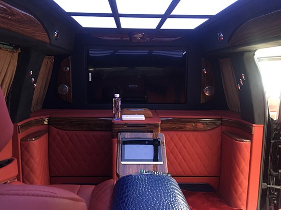 18款总统一号商务车内部还配备了真皮桃木内饰,高级地毯,高级豪华的异域吧台,带来梦一般的境界,LED高清液晶电视,前后可视影像系统,侧面2个7寸液晶显示屏,高级数码家庭影院娱乐系统,这一切似乎无言地诉说着“总统一号”室内的至尊与豪华。