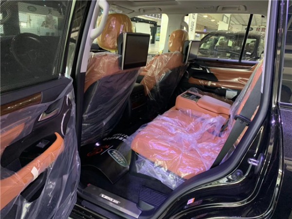 中东雷克萨斯570 S巅峰限量款 配置:雷达测距,台显,金属漆 ,黑色前中网 黑色门把手,黑行李架 ,前后大包围 ,射灯 ,21轮 ,遥控启动 ,车黑身防擦条, 流水式转向灯,带运动底盘,运动模式,换挡拨片、冰箱、天窗、智能卡、电眼、环影、后娱、底盘升降、前座椅通风加热(真皮)、导航、桃木多功能方向盘、桃木内饰、航空照明脚踏、黑LED 氙灯 大灯清洗、迎宾灯、三区空调、三排电动、电尾门、后座椅通风、车道保持、二排遮阳帘、马克莱文森音响