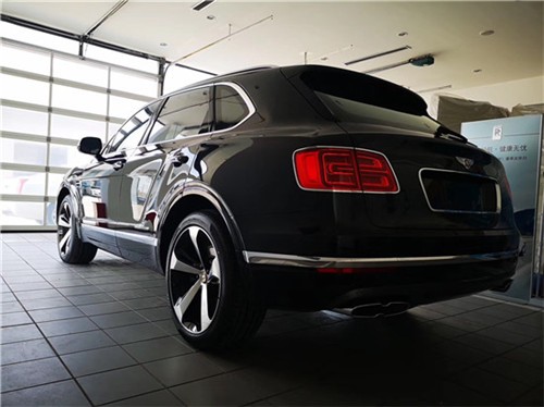 添越的两侧尾灯在后背门处一分为二,融入了B型光源造型,被尾门分为两段式,不论白天还是夜晚,都可以营造出独特的视觉效果,车尾部和后腰线完美结合,打造实用并且动感的车尾。浮雕般的后轮拱复刻了经典的宾利造型元素,并展现出添越自内而外散发出的自信。