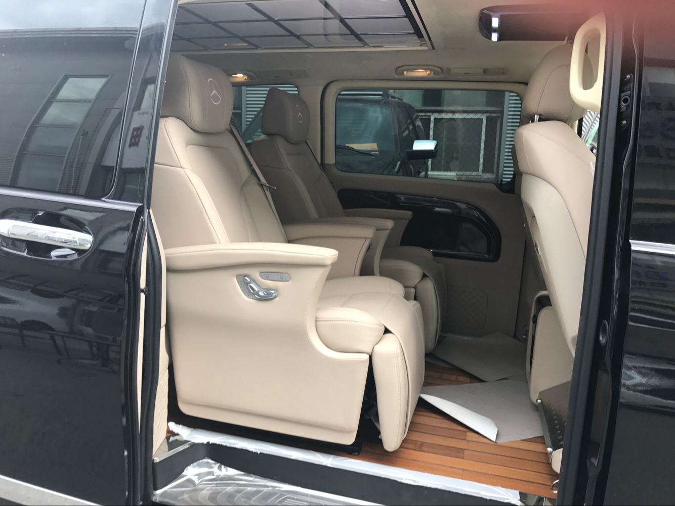 2018款奔驰商务车进口V级前后舱无隔断,电动侧滑门,闭合声音清脆,还可通过中控台按键多种方式自由操控,奔驰进口V级豪华商务房车为您度身定制VIP专属步入感。乘客舱前排首长级多功能按摩座椅带脚托,设计了滑轨,可自由电动移动和收缩,适应多种身高、体型的乘客,多种坐姿任君挑选,将舒适惬意延伸到车内每个角落。娱乐影音配备齐全,吸顶高清液晶电视,需要时可以往下翻,按钮一按,最新热点、时尚资讯随时掌握。
