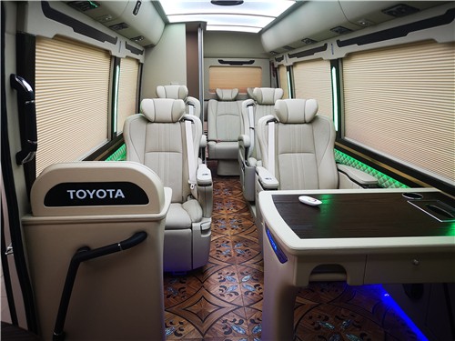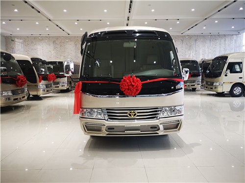 丰田柯斯达 (配置|询价)9座10座改装房车价格及配置,丰田考斯特9座10座商务车车身长为7.005米,身宽度为2.040米,车身高度为2.774米,在这样宽敞的内饰中之安放9个或者10个座椅,大家可以想象出乘坐丰田考斯特改装商务车时的舒适和自由之感。丰田考斯特改装商务车原车的发动机底盘以及变速器均是原装进口,所以在行车的过程中动力十足而且超稳的底盘不会给我们任何颠簸之感。