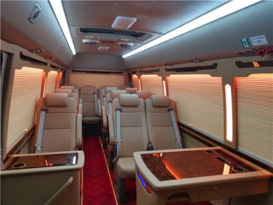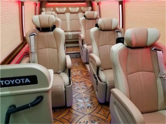 丰田考斯特17座从座椅的改装商来说,我们可以根据自己的需要选择豪华版真皮座椅也可以选择织物座椅,座位的数量也可以根据我们的需要进行调整,9座也好,16座也好,我们都可以根据自己的需求进行改善。同时我们可以对座椅进行改装。