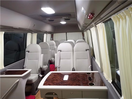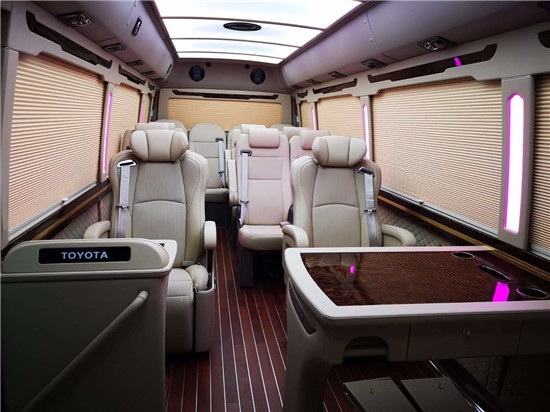 丰田考斯特布局安排也非常合理,宽裕的活动空间和地毯通道,配合中央通道氛围灯,让每位乘坐的贵宾都能方便进入然后享受舒适的旅程。我们的用心设计还体现在,巧妙地避开由轮毂包凸起而带给贵宾腿部的局限感和压抑感,我们突破性地将座椅设置于轮毂包上,彻底放松了腿部空间,所以说无论坐在任何位置的贵宾,都致力于带给每位尊贵的乘客同样舒适的享受。另外,车载冰箱与储物箱的大小也恰到好处,超薄环保材料装饰设计,既美观高档又不额外占用空间,却能提供视觉享受和更有价值的服务。