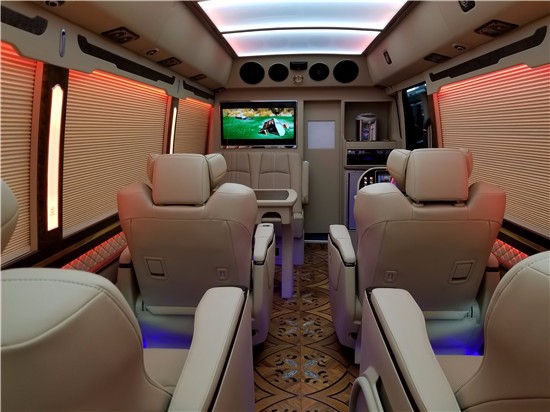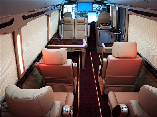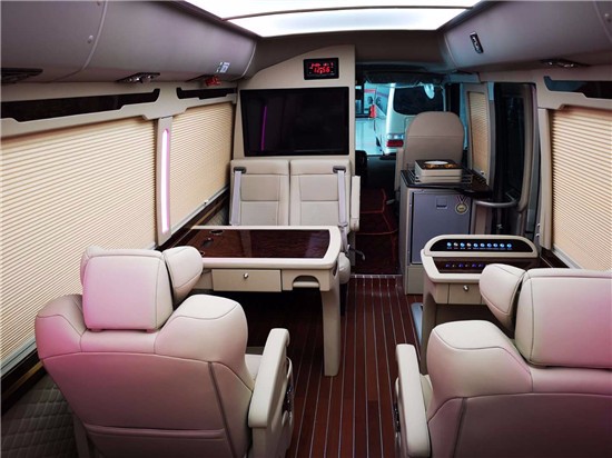 丰田考斯特改装陆地头等舱由首席高端商务车改装设计师潜心设计的空间布局设计十分合理:当您走进车内,首先看到的是高级首长航空坐席,(无靠背、无扶手的)长软椅(装有厚垫靠背的)航空座椅前专门配备车载多功能汇报式办公桌,配有杯托、纸巾盒和储物盒等贴心装置保证了行车过程中的使用方便及办公时的专注,数据转换系统的巧妙安置更是实现了行车办公时多种办公用具的轻松转换,为您打造出更加理想的办公环境,让车载移动办公由理想变为现实,让您在享受豪华、舒适的同时,实现无忧办公的完美状态。