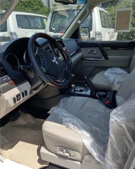 内饰方面:19款三菱帕杰罗相较于老款,档次感有了明显的提升。对称性的中控台加入了木纹饰板的装饰,瞬间感觉档次感满满,中间部位镶嵌有一块大尺寸液晶显示屏,支持车载互联、蓝牙、GPS导航等功能,科技感十足,多功能方向盘的设计没有什么变化。在座椅方面,该车采用仿皮+真皮包裹,舒适性上也还不错。在配置上,新车配备有ESP车身稳定系统、刹车辅助、主/副安全气囊、定速巡航、中央差速锁、电动天窗等,配置很是厚道。