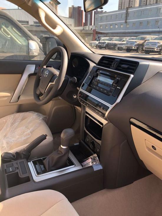 19款中东版丰田霸道2700车厢内以柔和颜色作主调,充裕的车厢空间,带来非凡舒适享受。丰田霸道2700仪表盘至是单纯的双筒造型,没有多余的点缀,中间的液晶显示屏简单易懂。内部空间的舒适性展现着普拉多除了硬汉之外的另一个形象,方向盘造型新颖,较为粗壮,上面布置了音响、电话等控制键,操控起来手感出众。