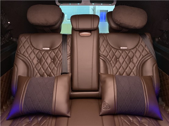 迈巴赫VS680商务车后排依然采用宽大的三人联排座椅,乘坐舒适感毫不逊色于中排航空座椅,带中控屏的多功能隐藏式扶手,可对座椅进行前后滑动、靠背调节,给予每一位乘客最舒适便捷的乘车体验。
