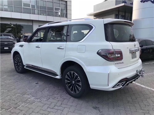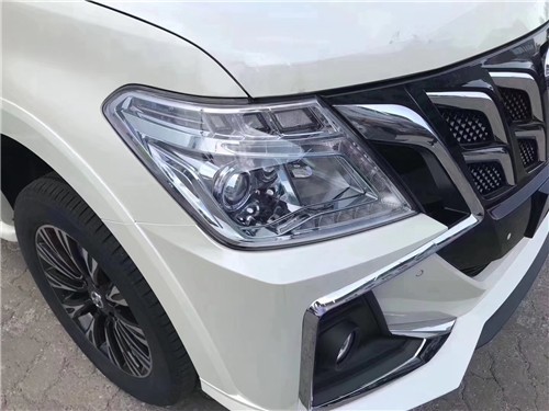 日产途乐Y62中东4.0前脸增加了许多棱角,大灯被上调拉长与调高的腰线融为一体。别具一格的全新多角度反射式组合前灯,与线条自然简洁的前格栅 护栏完美映衬,绽放家族的震慑魅力。
