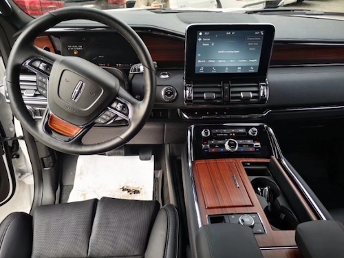 19款林肯领航员7座SUV精雕细琢的内饰,结合了美国胡桃木和高级真皮材料、丝光镍饰件与白色发光二极管等组合一起,营造出一个豪华、浪漫而又极具现代感的车内环境。方向盘和轿车一样的轻盈,周身散发出来的尊贵气息,让人肃然起敬。