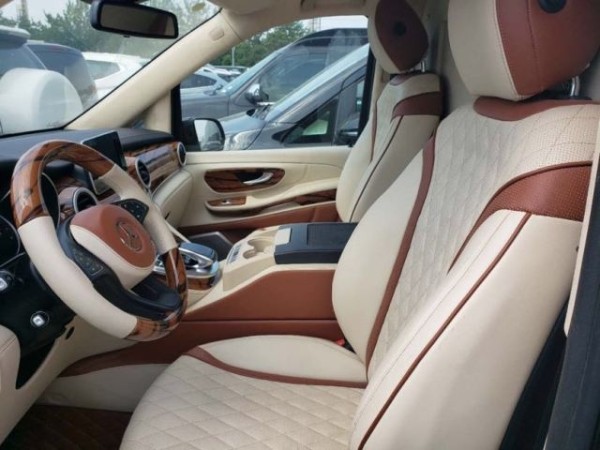 奔驰V250改装7座改装商务车●全新安道尔航空座椅、气动按摩、加热、通风、一键式记忆座椅调节、腿拖调节、靠背前后调节,头枕升降,电动肩部支撑。 ● 豪华沙发床加热、靠背调节、腿拖调节、半展平状态。 ● 可拆卸式娱乐活动桌 ● 沙发床后背手动储物抽屉 ● 四季实用透明环保地膜 ● 经典镀络衣架 )限量版手工高光泽座椅扶手 外观部分 ● 车身尺寸MM5370*1928*1920(长宽高) ● 整车外观镀铬件装饰、镀络门踏 ● 整车漏电保护系统。